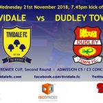 Continue readingWest Midlands Regional League Cup Premier, Second Round Tividale FC v Dudley Town FC Wednesday 21st November Kick off at 19-45 Admission prices: Adult £5 Concessions £3 (Age 16s-18s, Over 65s, Club Members, Students with NUS card) Under-16s free with a paying adult Match programme £1:50p Click here for details