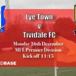 Tividale are away at Lye Town FC in the Midland Football League Premier Division on Monday 26th December Kick off 11:00 For those who wish to make the journey please see below for further information Club Address: Stourbridge Road, Lye, STOURBRIDGE DY9 7DH Directions to the Ground
