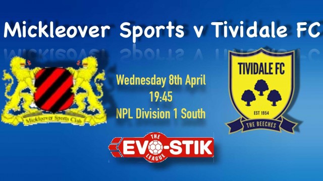 TIVIDALE’s game at Mickleover Sports has been rearranged for Wednesday, April 8th (KO 19:45).