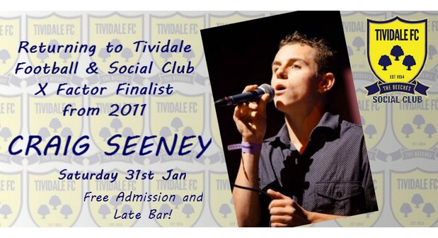 On Saturday 31st Jan X Factor Finalist from 2011 CRAIG SEENEY. Free Admission and Late Bar!