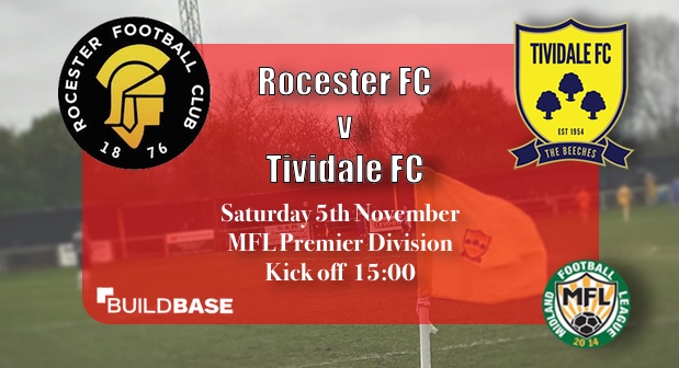 Tividale take on Rocester  FC on Saturday 5th November Kick off 15:00