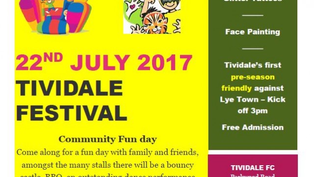 On Saturday 22nd July 2017. Tividale FC will be holding their annual Festival and also their first pre season friendly against Lye Town FC.