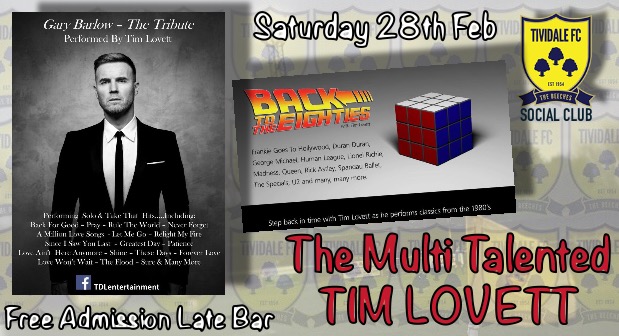 Coming to Tividale Football and Social Club on Saturday Feb 28th, the Multi Talented TIM LOVETT