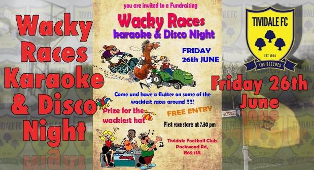 You are invited to “Wacky Races” fundraising evening at Tividale Football and Social Club on Friday 26th June.